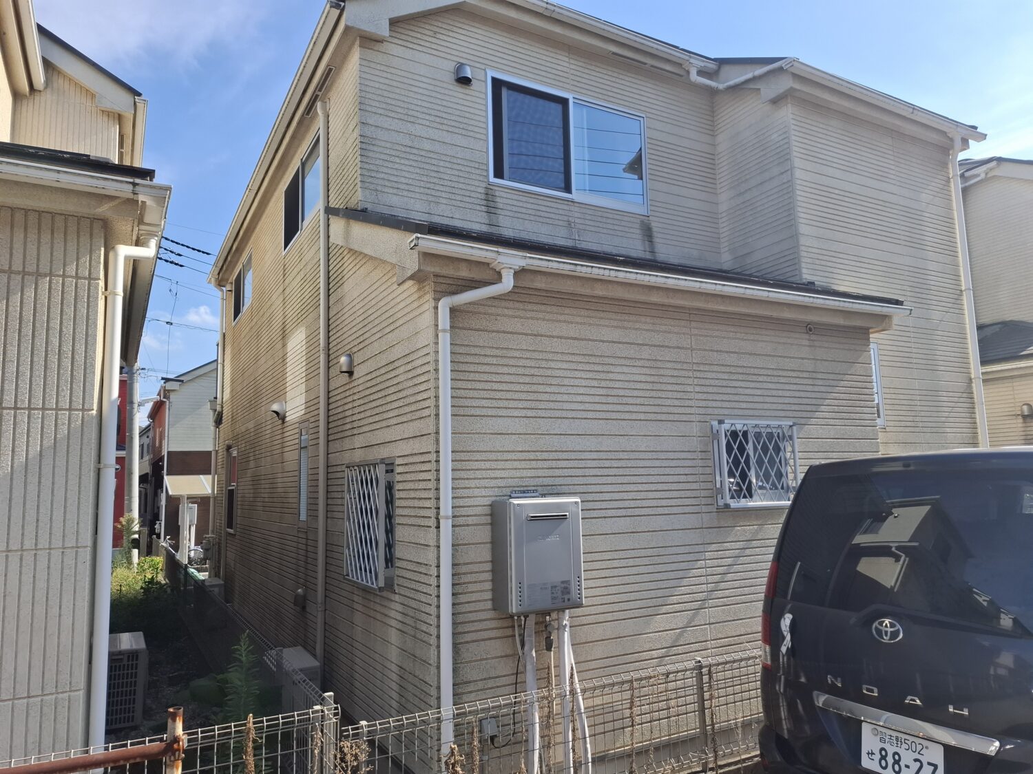 全体的に高圧水洗いして 屋根はコロニアルでベスコロフィラーで下地強化