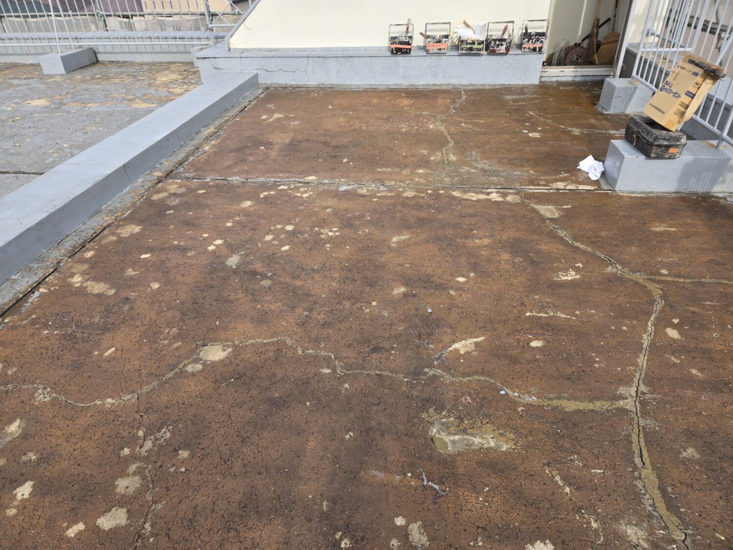 密着が強い個所(約60%)は機具を使わないと剥がれずで剥がし終わったら防水工事の