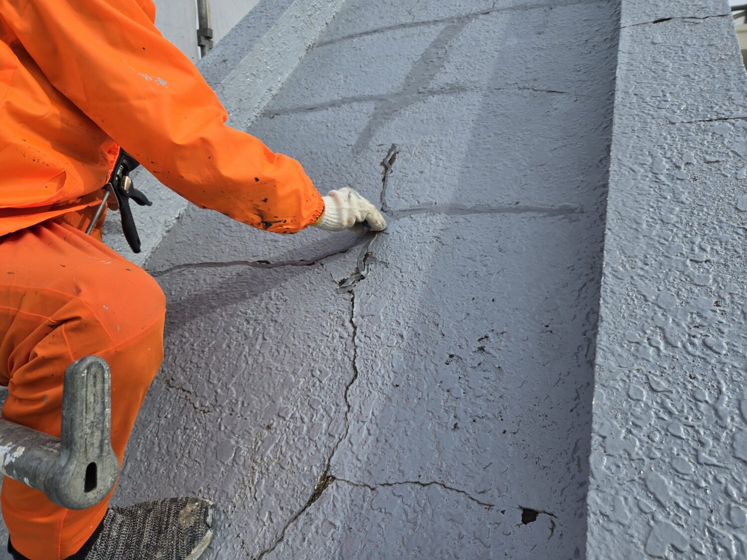 屋上ウレタン塗膜脱気工法 クラック部シーリング処理