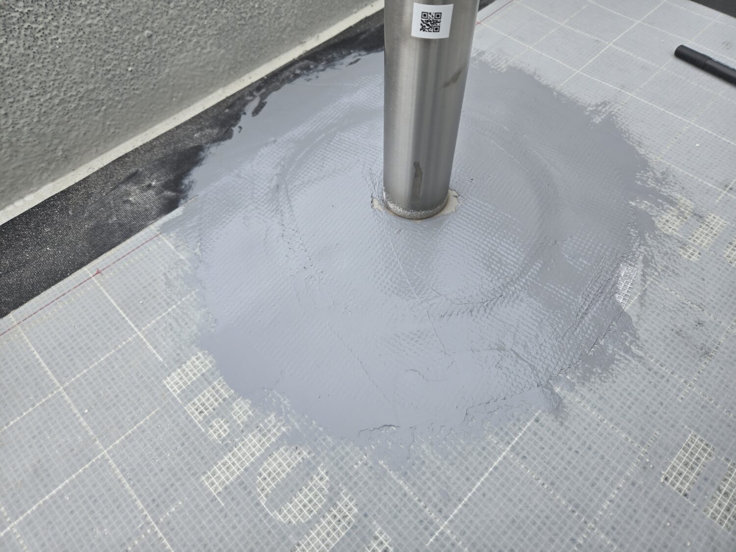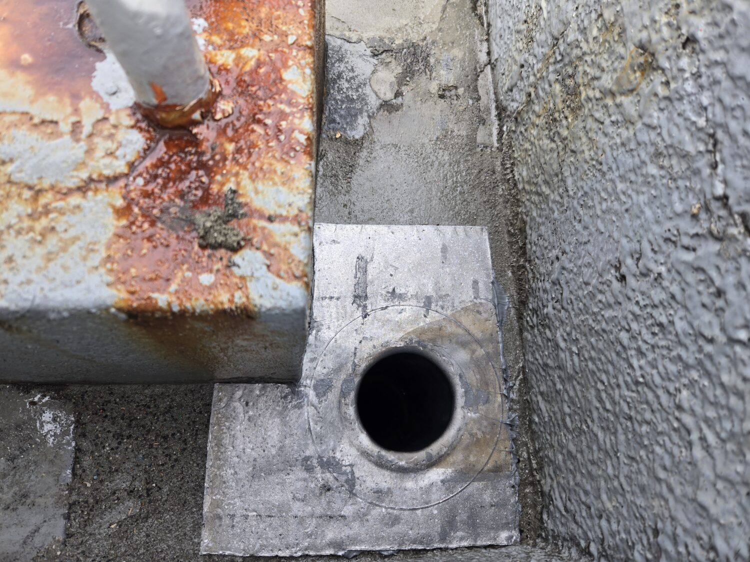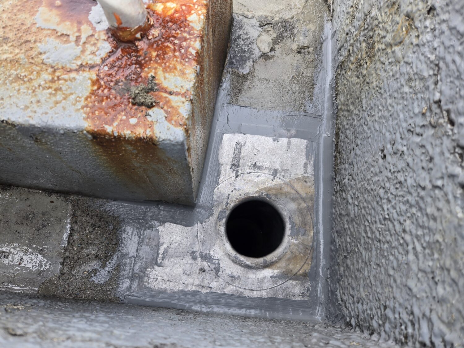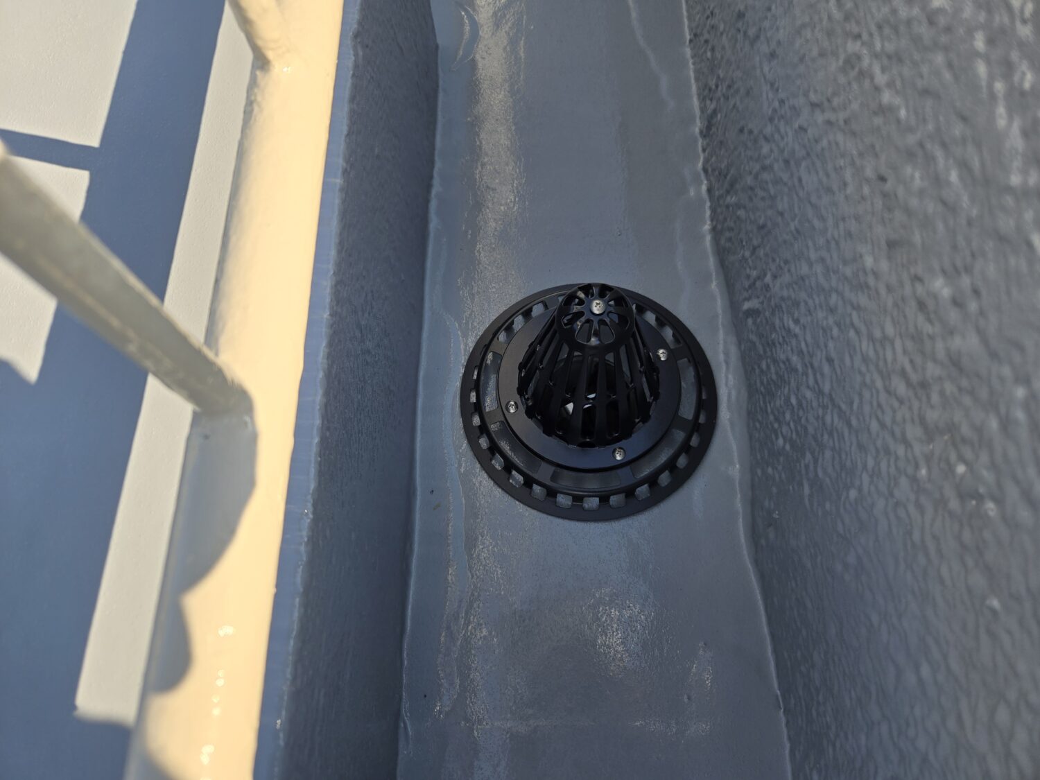 屋上ウレタン塗膜脱気工法 改修ドレン取り付け後シーリング処理