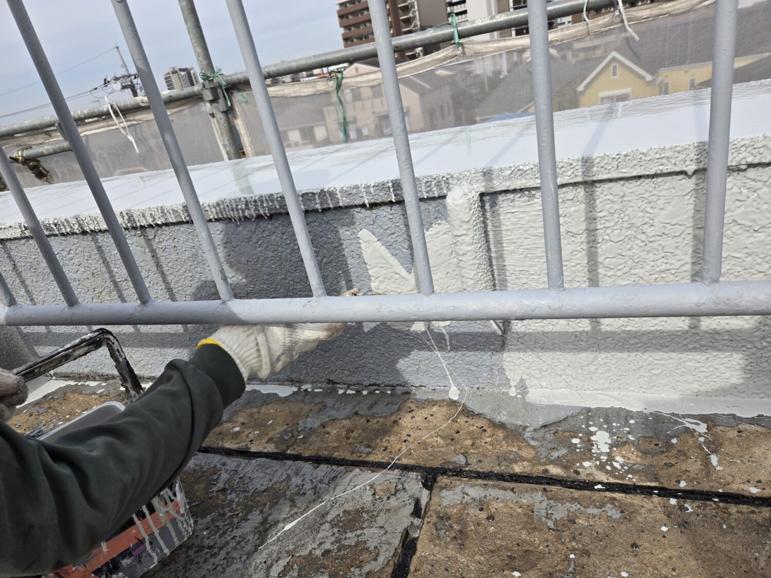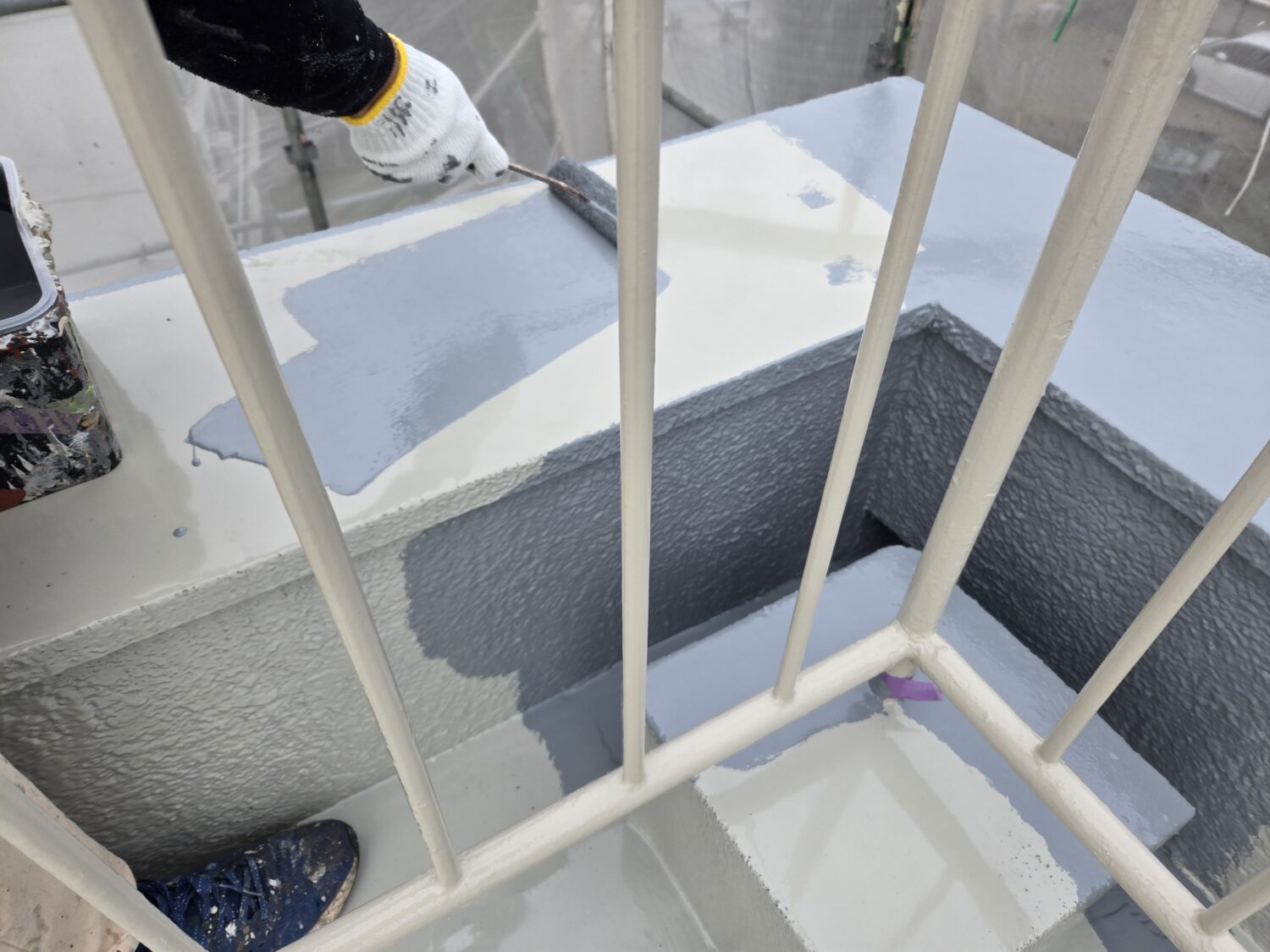 鉄部塗装は(ケレン作業+錆止め+クインマイルドシリコン2回塗り)手摺.フェンス.ドア.扉.物干等