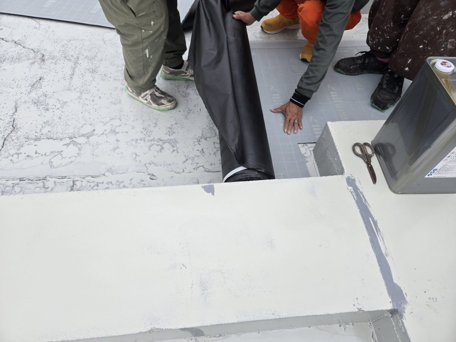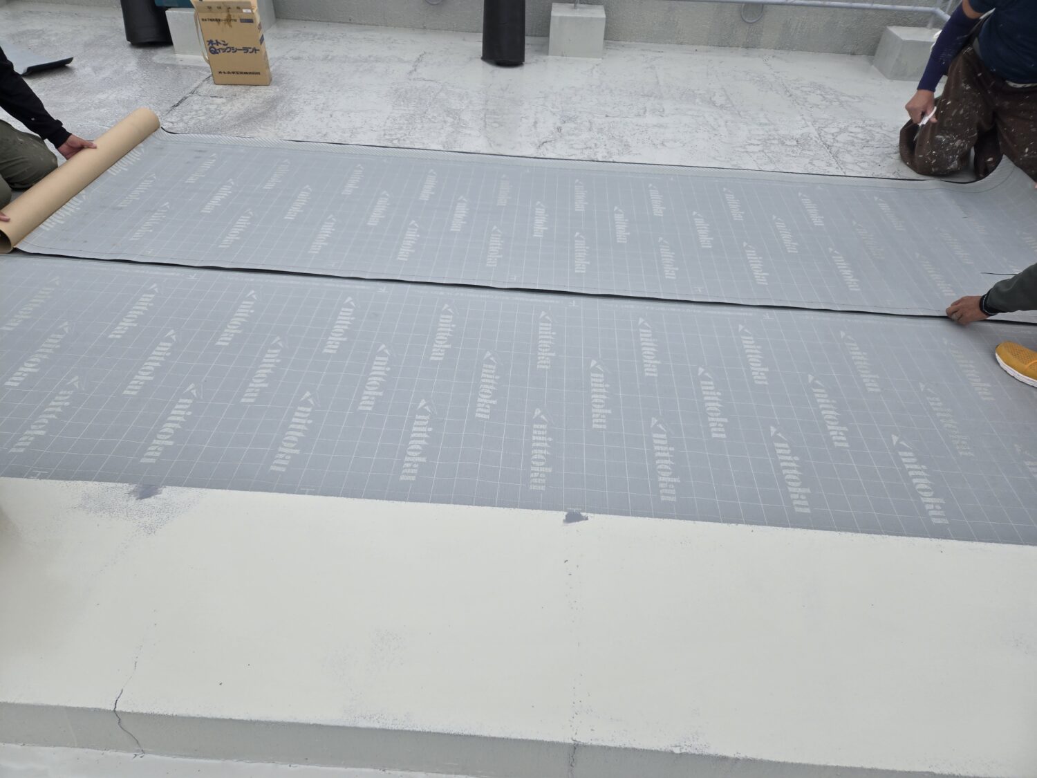 屋上ウレタン塗膜脱気工法 通気緩衝シート貼り