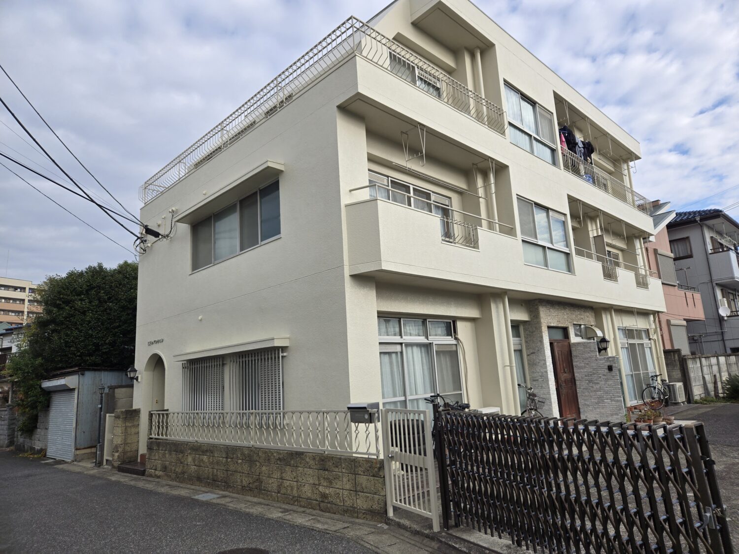 鉄部塗装は(ケレン作業+錆止め+クインマイルドシリコン2回塗り)手摺.フェンス.ドア.扉.物干等