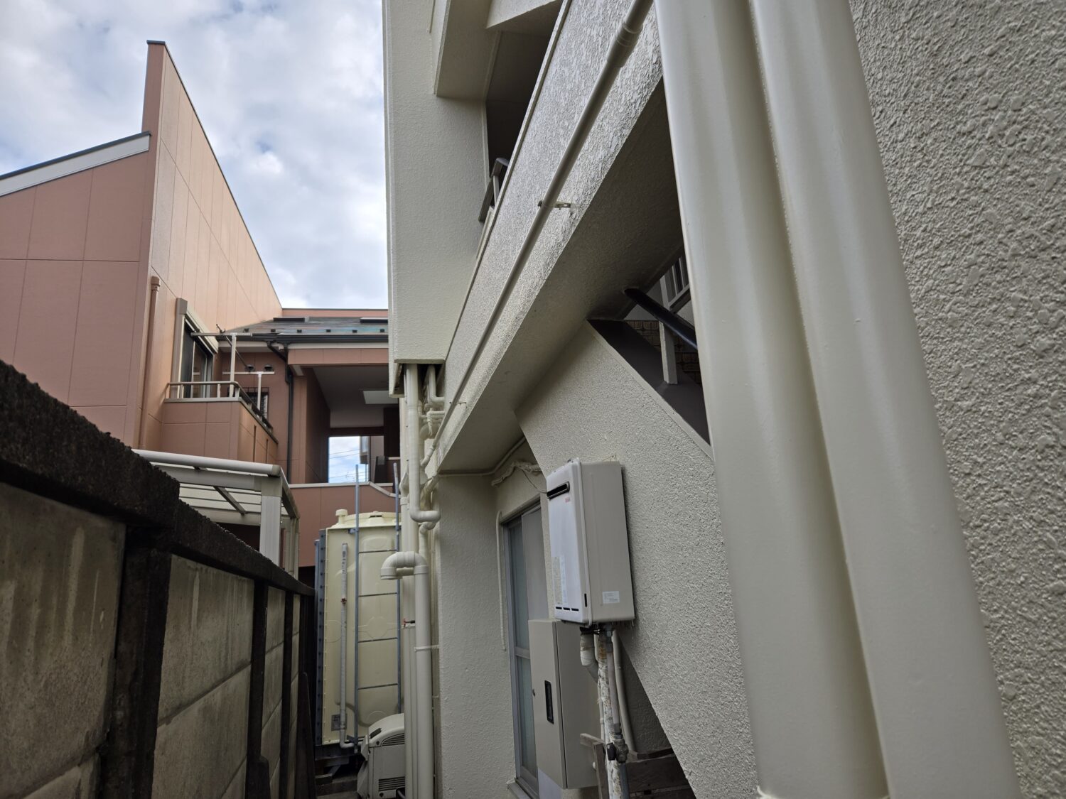 天井.パーテイションは水性ケンエース2回塗り 雨樋.パイプ等はクインマイルドシリコン2回塗りで